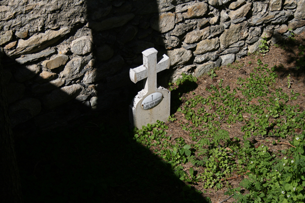 Las tres fosas comunes existentes en el cementerio de Benasque no se encuentran delimitadas y sólo pueden ser localizadas de un modo aproximado en base al testimonio de varios informantes de la localidad. Esta fosa contendría los restos de tres soldados republicanos heridos que habrían optado por suicidarse de forma colectiva al comprobar que a quienes les transportaban les resultaría prácticamente imposible atravesar los altos puertos fronterizos si debían arrastrarles junto con ellos. Ante la evidencia de que el enemigo les pisaba los talones y de que la vida de sus compañeros estaba en peligro por su empeño en ayudarles habrían optado por poner fin a su vida. De su identidad nada se conoce y es seguro que no procedían del valle. Esta fosa, como la anterior, estaría situada en un espacio vacío del cementerio, sito a escasos metros a la izquierda de la puerta de entrada.